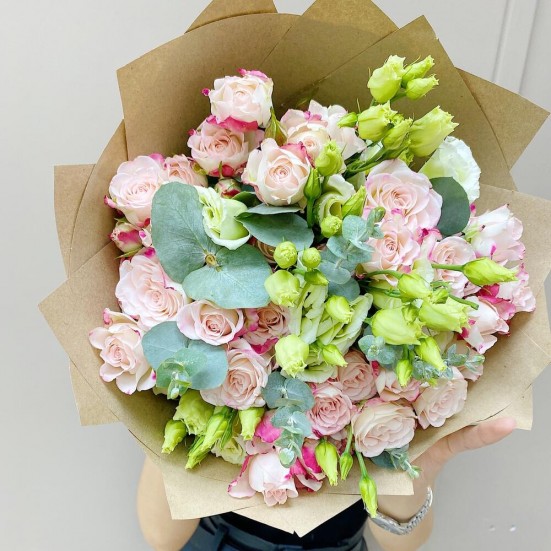 Букет из эустомы и кустовой розы