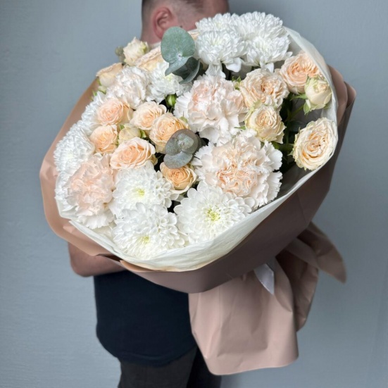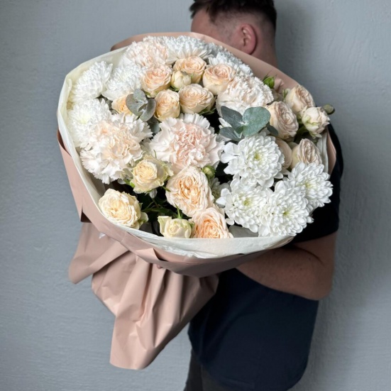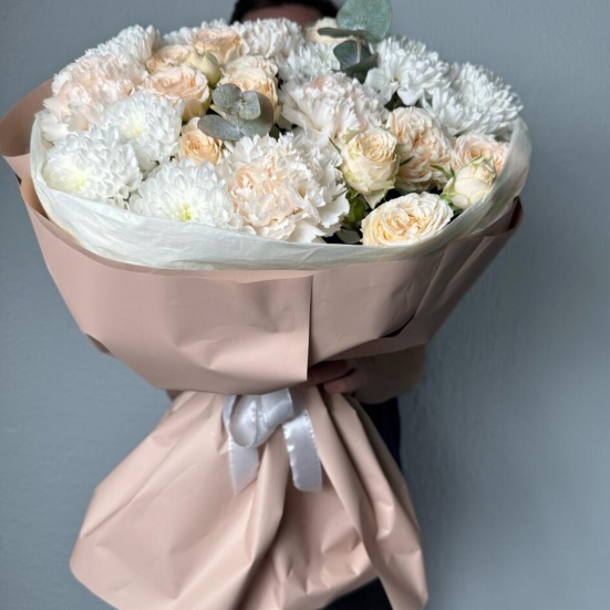 Букет из пионовидных роз и хризантем в Апрелевке