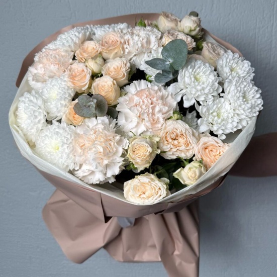 Букет из пионовидных роз и хризантем
