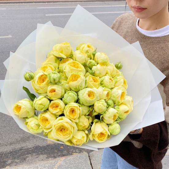 Пионовидные кустовые розы желтые 15 шт.