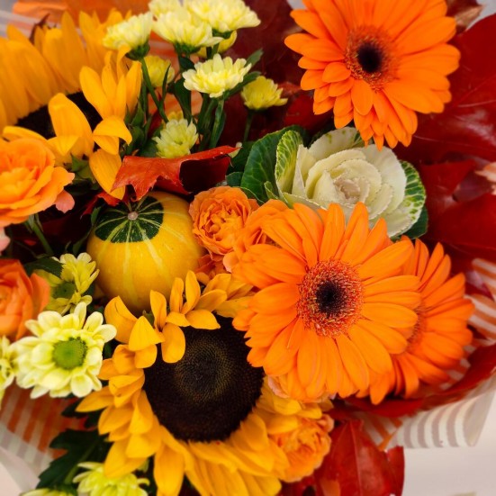 Букет с подсолнухами и хризантемами